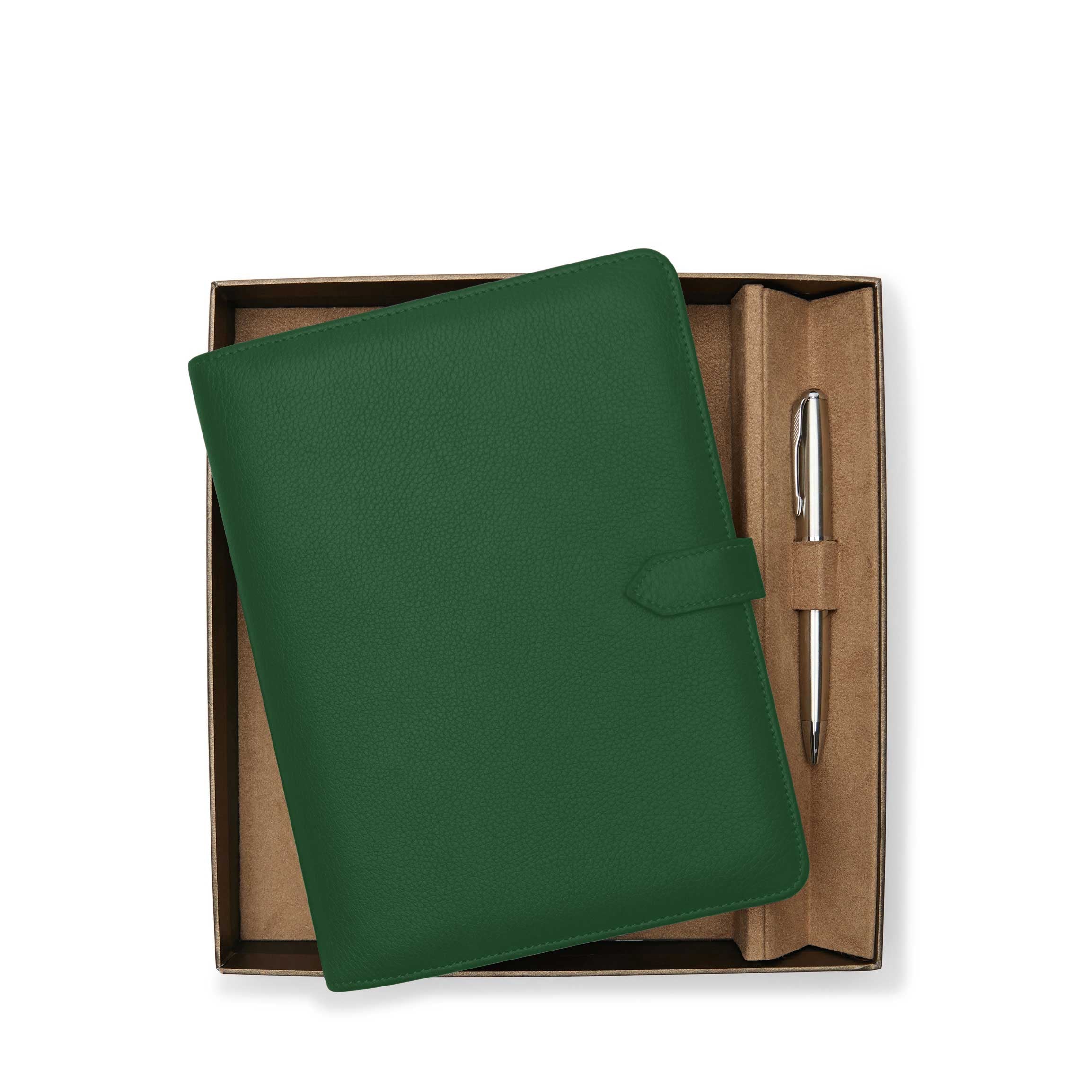 The A5 Medium 2-in-1 Journal Gift Set is the perfect combination of elegance and functionality, designed for the dedicated writer or professional. This thoughtfully curated set includes an A5 snap journal cover, a sleek ballpoint pen, an A5 spiral journal refill, and a junior padfolio refill—everything needed for note-taking, journaling, or brainstorming on the go. Whether you’re gifting it to a colleague, employee, or someone who cherishes the art of writing, this versatile set offers a sophisticated and practical way to capture ideas and inspiration.